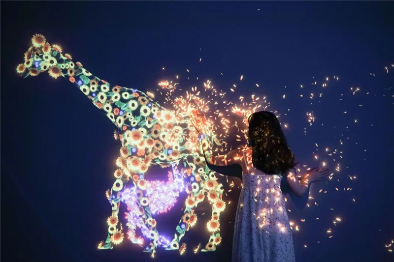 你有多久没亲近自然了 孩子们有多久没见过 春日花海、夏日萤火 有多久没倾听过秋日的鸟鸣虫吟 现在,有这么一处流光溢彩的世界 山花烂漫 流水潺潺 精灵流窜 …… 你,不来吗? 在这里,你可以放慢匆忙的脚步 追随光的足迹 触摸自然的影子 夜游的花神 推荐打卡点唯美指数♥♥♥♥♥ 世间万物都有灵性 一切在于如何唤醒它们的灵性 灵性的花朵幻化成动物 在幽暗的花房里夜游 当你走进触碰,仿佛惊扰了灵性 动物回首骤停,万千繁花飘零散去 升空的烟花 互动指数★★★★★ 举手间 在夜空中点燃一朵 属于自己的绚烂烟火 虽如青烟短暂易逝 却似火焰般热烈炫目 在短暂的绚烂瞬间 绽放出五光十色的自我 烟花喷泉 推荐打卡点互动指数:★★★★★ 引燃的烟花被风吹起,扶摇而上 宛若喷泉,时急时缓,缤纷灿烂 似烟花绽放的绚丽夺目 似喷泉舞动的节奏韵律 是烟花也是喷泉 精灵音乐会 互动指数:★★★★★ 墙面世界里住着一群可爱的精灵 它们古灵精怪,招人喜爱 当你使用“魔法”轻拍道具 平静有序的世界被打破了 意想不到的奇妙事情旋即发生 积木城市 创意指数:★★★★★ 孩子是天生的规划师 给他一堆方块 畅想出一幅四通八达的交通网络 铁路、公路、航空 让火车、汽车、飞机在其间往来穿梭 彩绘世界 亲子指数:★★★★★ 在彩绘世界里 孩子们的想象力和创造力将被释放 以彩色蜡笔为工具 为作品涂上梦幻的色彩 孩子们眼中的世界 永远是色彩斑斓 天马行空,充满想象 踏浪少年 互动指数:★★★★ 犹记童年“跳房子”的快乐时光 踏入层叠荡开的涟漪中 炫目的特效随即出现 记录着踏浪少年的欢声笑语 沧海桑田 互动指数:★★★★★ 挖出洼地,堆起高山,看地形变幻 伸出双手,释放水流,看流向何处 千山万仞,江河湖海的变化 斗转星移,沧海桑田的变迁 尽在一个魔术般的沙池 森林壁影 推荐打卡点创意指数:★★★★★ 黑暗的森林里栖息着一群害羞的动物 它们善于将自己藏身于丛林中 轻触沉睡的动物 召唤出犀牛、大象、狐狸等动物 奇妙的事情随即发生 音符的足迹 推荐打卡点互动指数:★★★★★ 空间里若干发光踏板 每个踏板都是一个发射器 踏步徐行 在灯光变幻中奏出不同的音符 步步莲花、音符交织 时如乐曲交响,时如虫鸣轻语 光影之旅临近尾声 或许此时你会骤然发现 原来,“光”,这样玩就够了! |